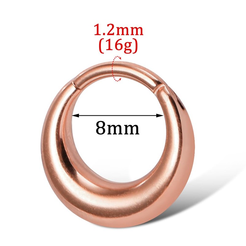 - Nose Rings Hoops: Unique and simple design nose septum rings hoop comfy for daily wear. Gauge size: 16G(1.2mm); Inner diameter: 8mm(0.31 inches) Rose Gold Plated Color