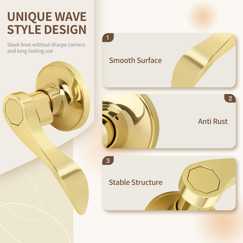 - [Modern Wave Design] The sleek and minimalist design door handle radiates elegance. The polished brass finish and your home's decor form harmonious color palette that complement each other.