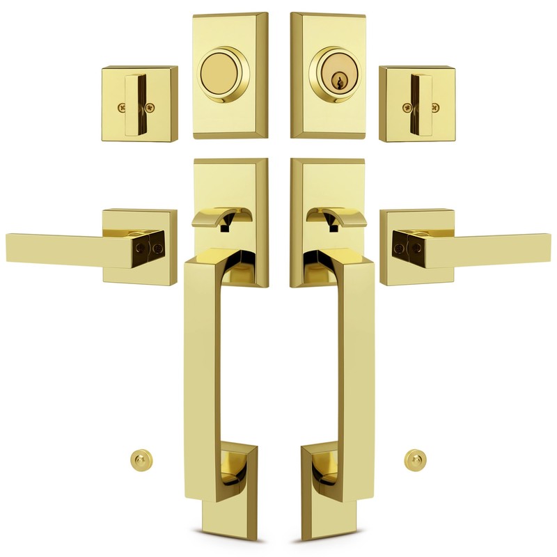 Moquin Double Front Door Lock Set, Polished Brass Square Front Door Hardware ...
