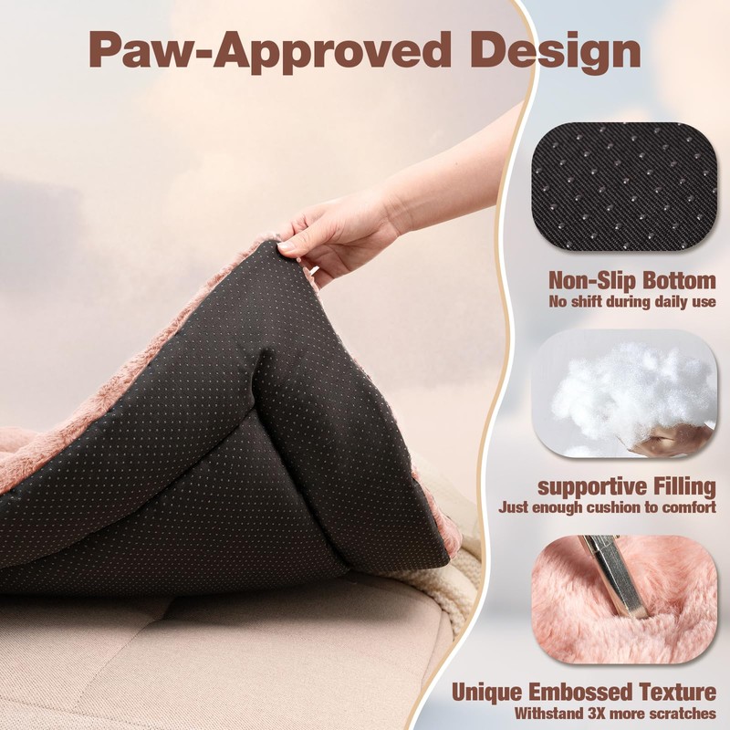 • Portable & Secure Design - Perfect for home or travel, this dog cushion bed delivers both comfort and convenience. Featuring a bottom with non-slip particles, it ensures your pet stays securely in place while playing or resting. Its easy-to-fold design adds to the portability and practicality for any setting