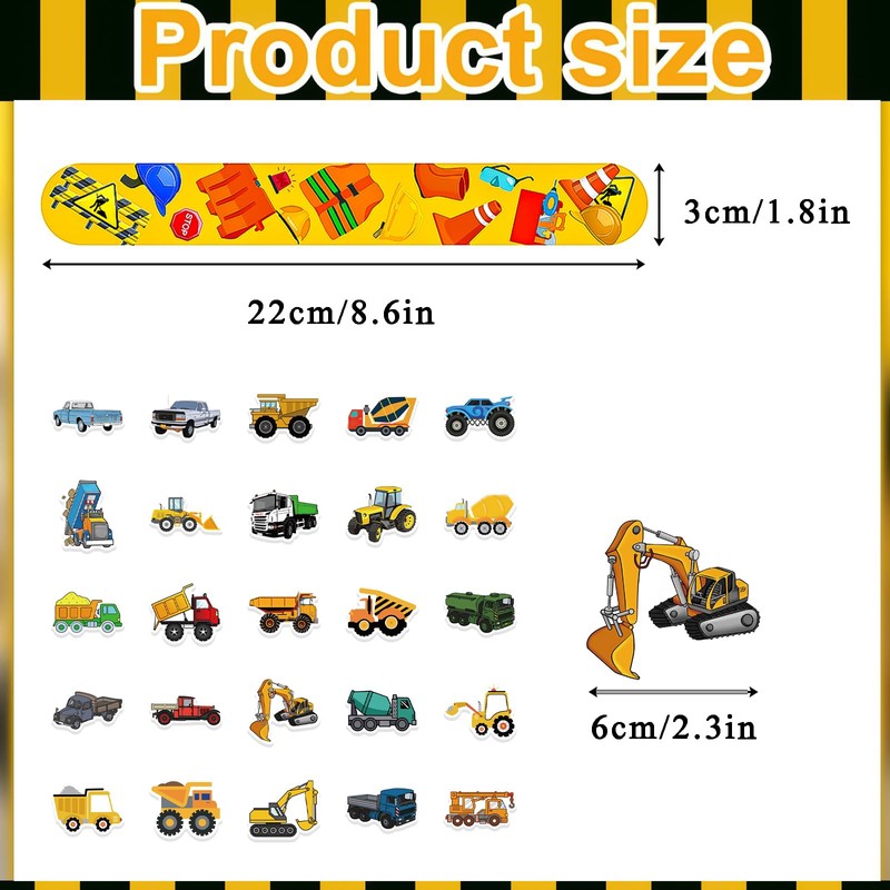 MORAINJAY 36Pcs Construction Vehicles Slap Bracelets and 50Pcs Stickers,Slap Bands for Party Bag Fillers,Kids Birthday Party Favors,Goodie Candy Bag Stuffers for Girls Boys Party Suppplies