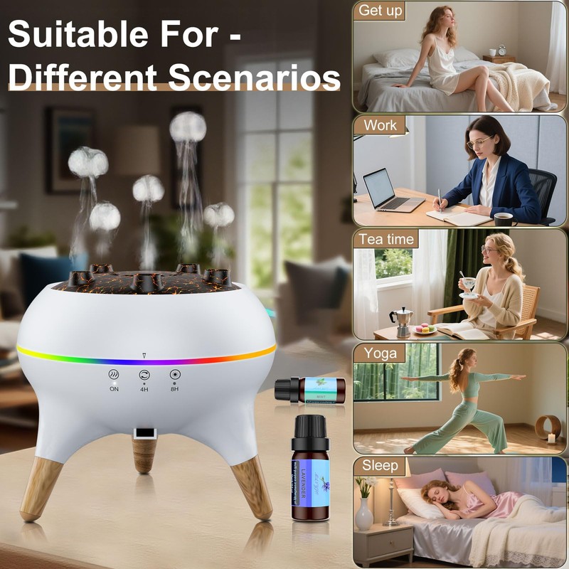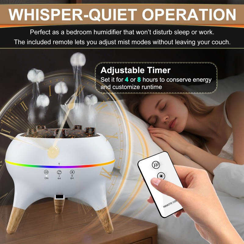 - ✨Remote control and mother and baby grade safety materials: This electric aromatherapy device is equipped with a remote control and has a 4-hour/8-hour timer setting. It uses food contact grade PP plastic and BPA free atomizing tablets, which are heat-resistant and odorless; The streamlined body of the jellyfish is round and angular, effectively avoiding collision risks during home use