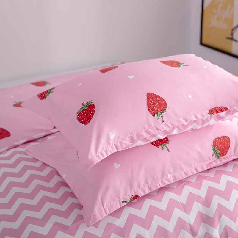- 🍓Cute Reversible Design: Strawberry Duvet Cover set create a perfect sleep environment for your kids. It makes your bedroom full of energy. This Duvet Cover Set is reversible, both sides could be used individually, simply turn your duvet cover set over to change up your room decor anytime you want.