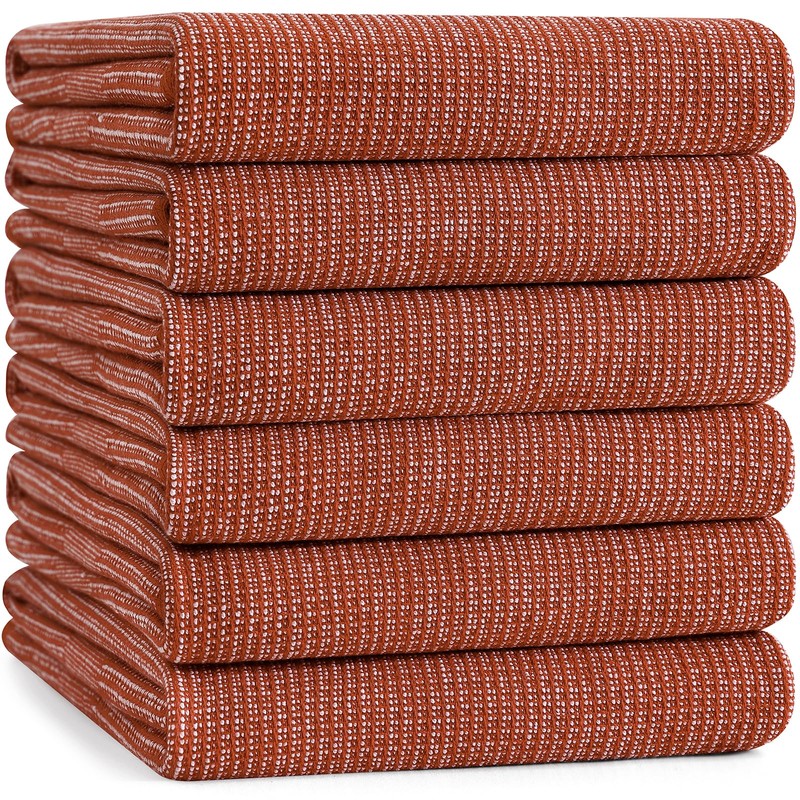 Mordimy Premium Kitchen Towels 6 Pack (18 x 28 Inches, Rust), Large Cotton Kitchen Hand Towel, Flat & Terry Dish Towels for Drying Dishes, Super Absorbent Tea Dishtowels Set with Hanging Loop