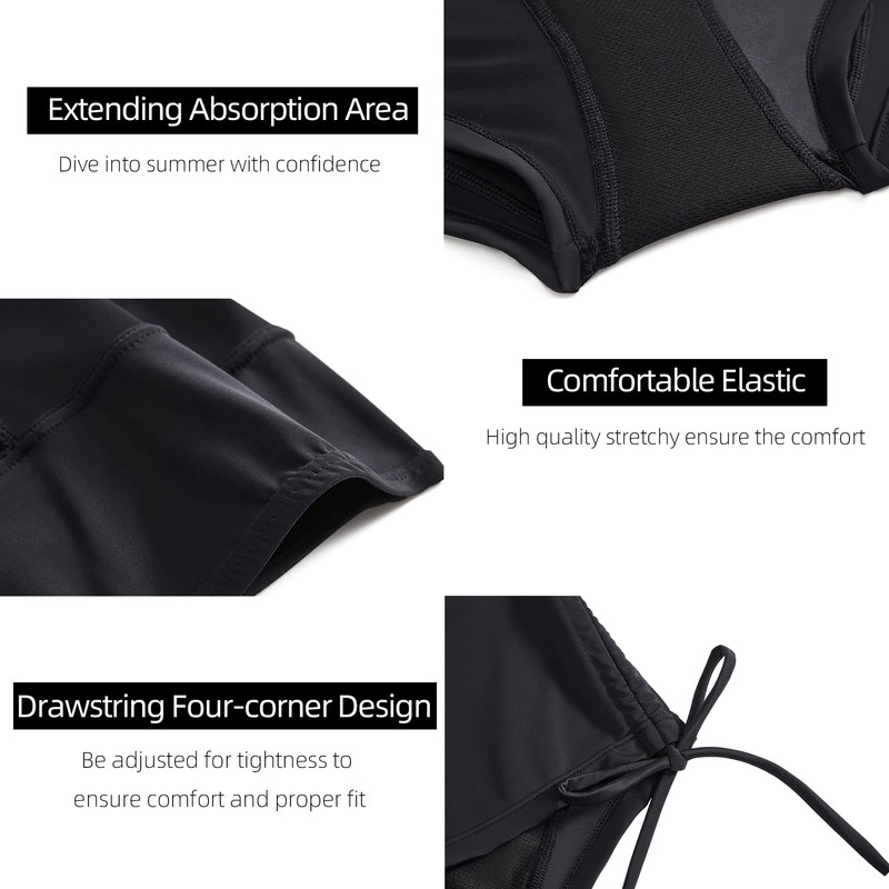 - Material impermeable: hechos de materiales impermeables, nuestros pantalones cortos de baño de época proporcionan una protección confiable contra fugas causadas por la menstruación.