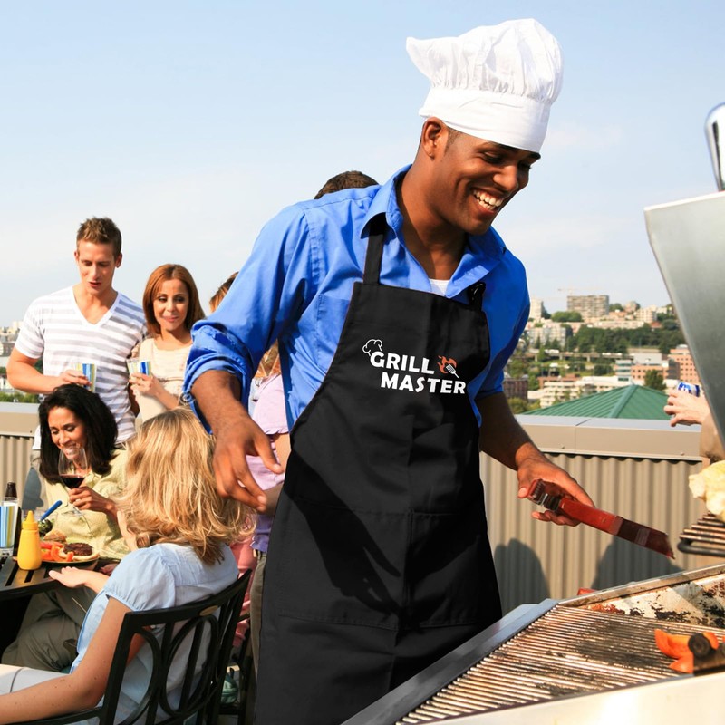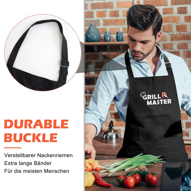 Mordx Bib Apron,Unisex Black Aprons Adjustable Washable,with 2 Pockets for Kitchen Crafting BBQ Drawing (Grillmaster 2)