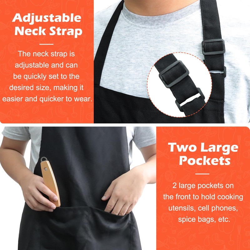 - High-quality durable material: Our aprons are made of 95% polyester and 5% cotton, which is comfortable and durable, effectively resisting oil stains and water stains in the kitchen, keeping your clothes clean, and withstanding frequent use and multiple washes.