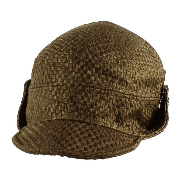 Morehats Faux Jute Floppy Short Brim Baseball Cap Aviator Trapper Hat - Brown