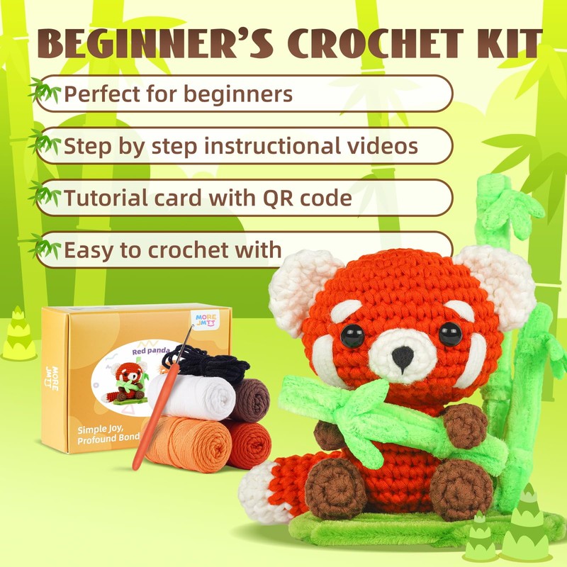 MOREJMTT Crochet Kit for Beginners, Crochet Animal Kits, Crocheting Kit for Starters, Learn to Crochet with Step-by-Step Video Tutorials, Beginner Crochet Kit for Adults(Panda)