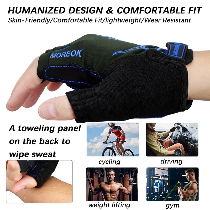 MOREOK Cycling Gloves Bike Gloves for Men/Women-[5MM Gel Pad] Half Finger Bicycle Biking Gloves for Cycling/Weight Lifting/Gym/Motorcycle/Rowing/Outdoor Sports-050-BLUE-L