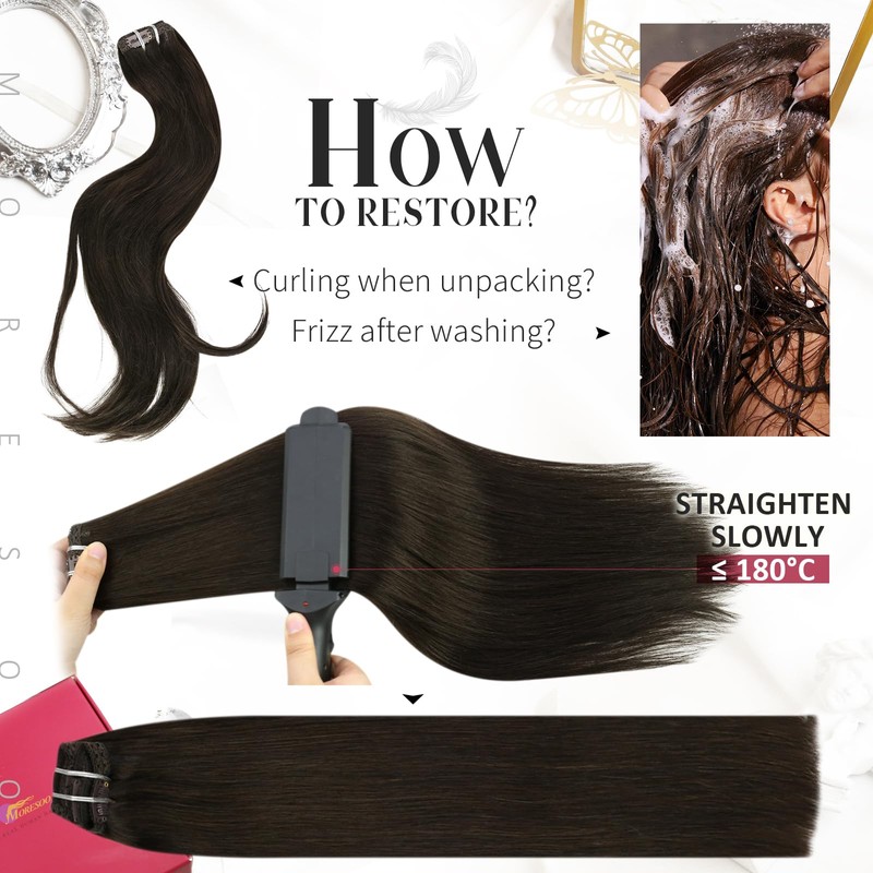 - 1. Quality: welcome to Moresoo Hair. You might find the best choice in the Moresoo Store. Our natural clip-in real hair extensions are made from 100% Remy real hair, which is purely natural and healthy real human hair without the addition of chemicals. It is comfortable and invisible. You just need to choose the right colour to match your hair perfectly.