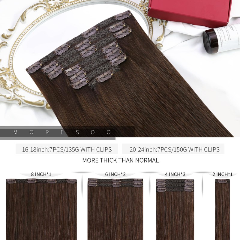 • Hair quality: Moresoo clip-in human hair extensions are made from smooth, soft Remy human hair. Healthy tips and strong hidden clips that adapt better to your natural hair and reduce damage to your natural hair