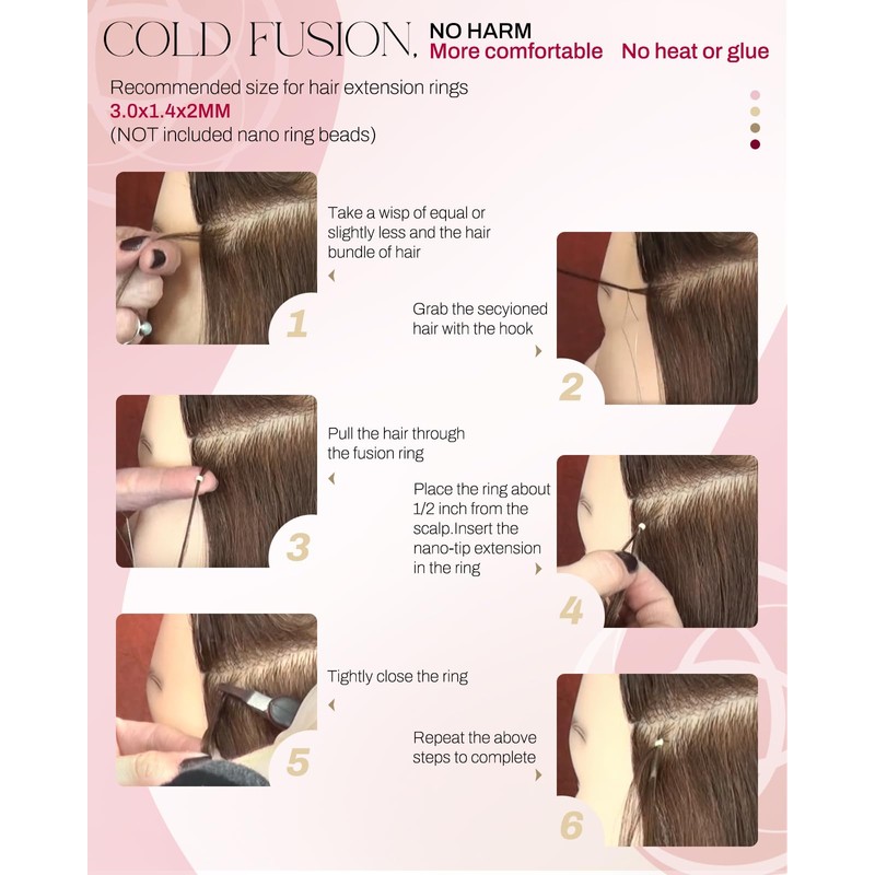 - Non-disposable product: Nano ring hair extensions can be adjusted as needed. Daily combing and washing as well as natural hair growth, the beads of the hair extension can loosen or shift down and can be adjusted and pressed every two weeks if necessary.