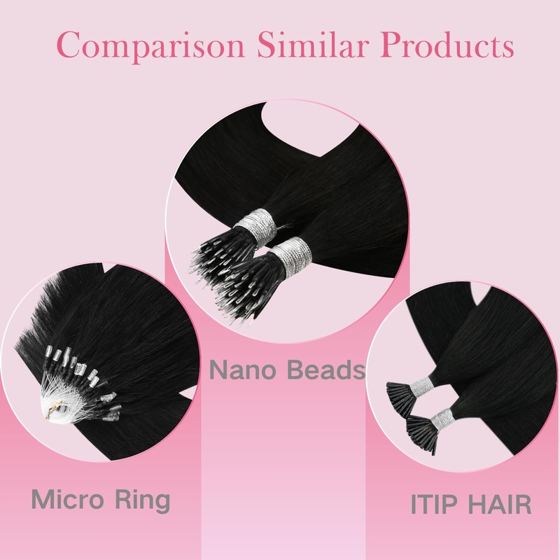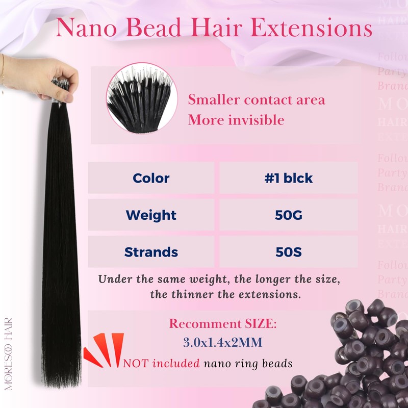 - Premium Nanoring Extensions Human Hair: Only the highest quality Remy hair is used for our Moresoo hair extensions to ensure smooth, soft and seamless integration with your natural hair. Nano beads are smaller and more discreet for a truly natural look.
