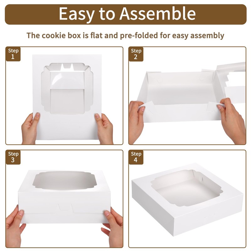 - Easy to Assemble: The baking box is quick and easy to disassemble and store. The cookie box is flat and pre-folded, you can quickly complete the assembly within a few minutes without tape or tools.