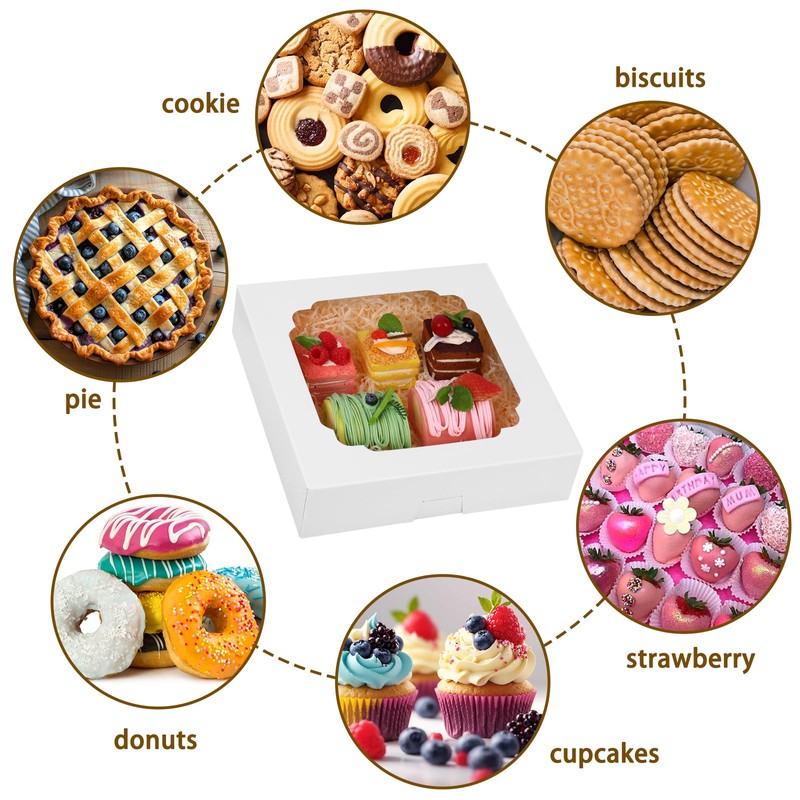 - Applicable Occasions: These square pie boxes can be used to put single layer cakes, cheesecakes, pies, cookies, chocolate strawberries, pastries, cupcakes, muffins, donuts, macarons, or any other baked goods.