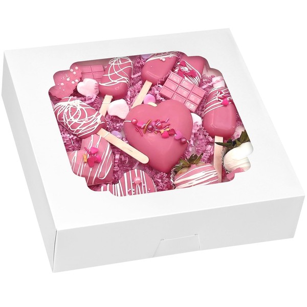 - Great Value Sets: 56 pie boxes with clear windows, which can fully satisfy your needs for parties or bakery sales. The size of each bakery box is 10x10x2.5 inches, which can hold enough muffins, chocolate-covered strawberries.