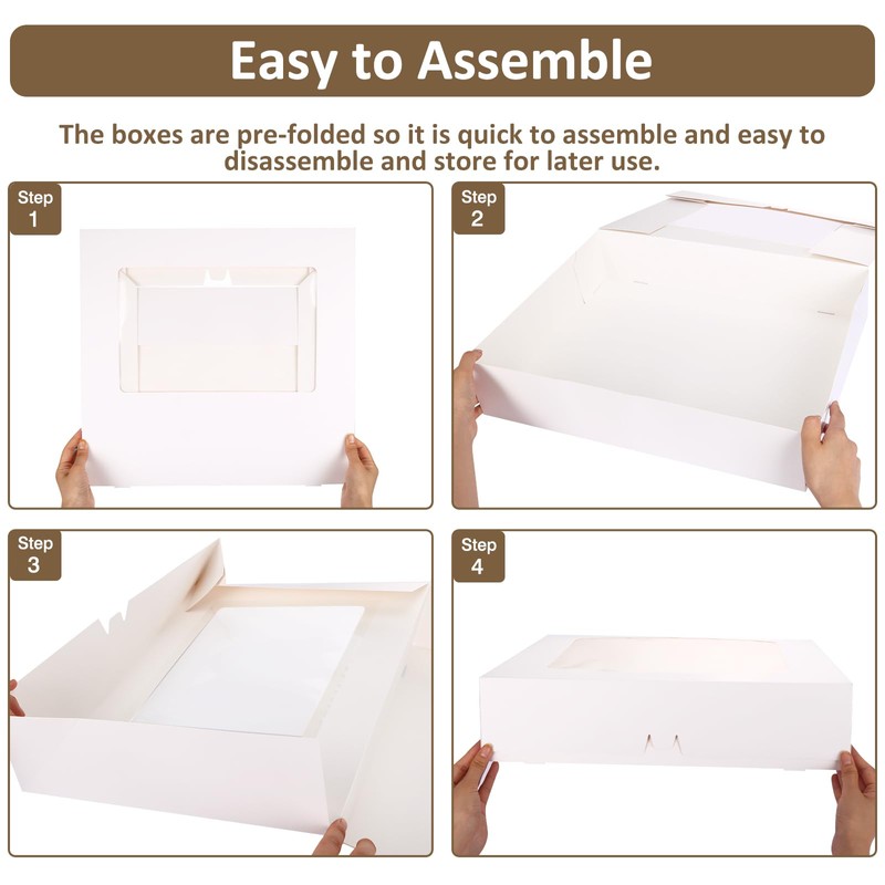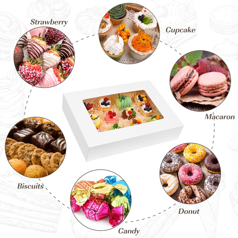 • Easy to Assemble: The cookie box is flat and pre-folded. Quick and easy to disassemble and store for using.It also features a crystal clear window panel to display your bakery, cakes, donuts perfectly.
