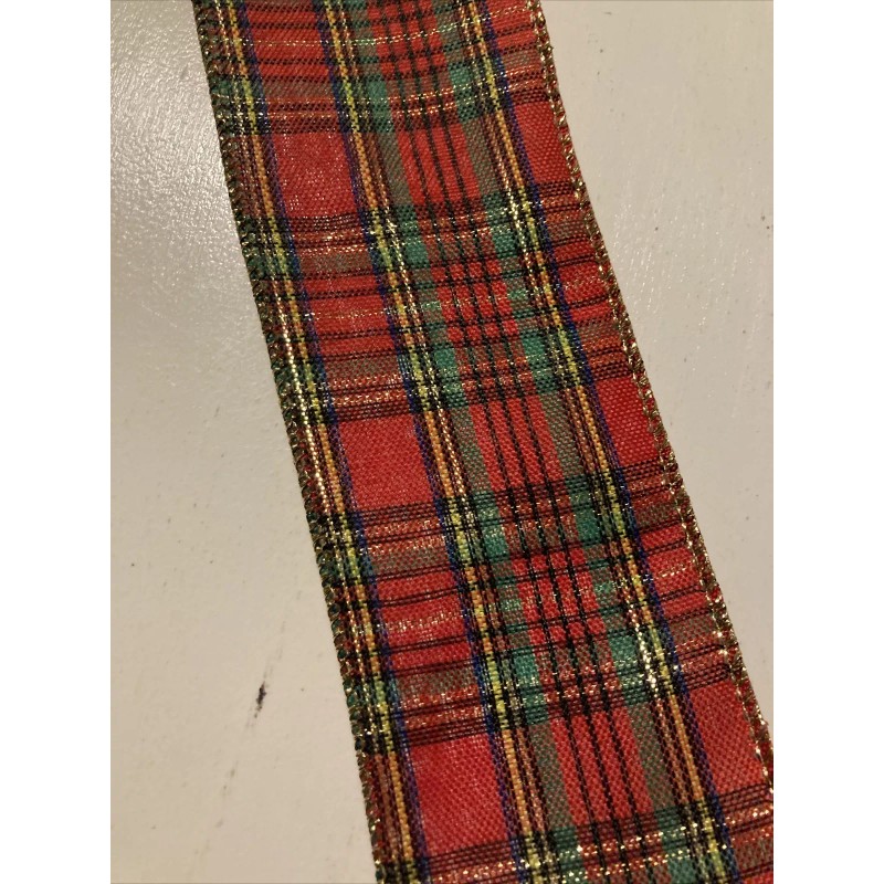 Morex Christmas TARTAN PLAID Metallic GOLD Thread WIRE EDGED RIBBON 2-1/2 x 5 Yards