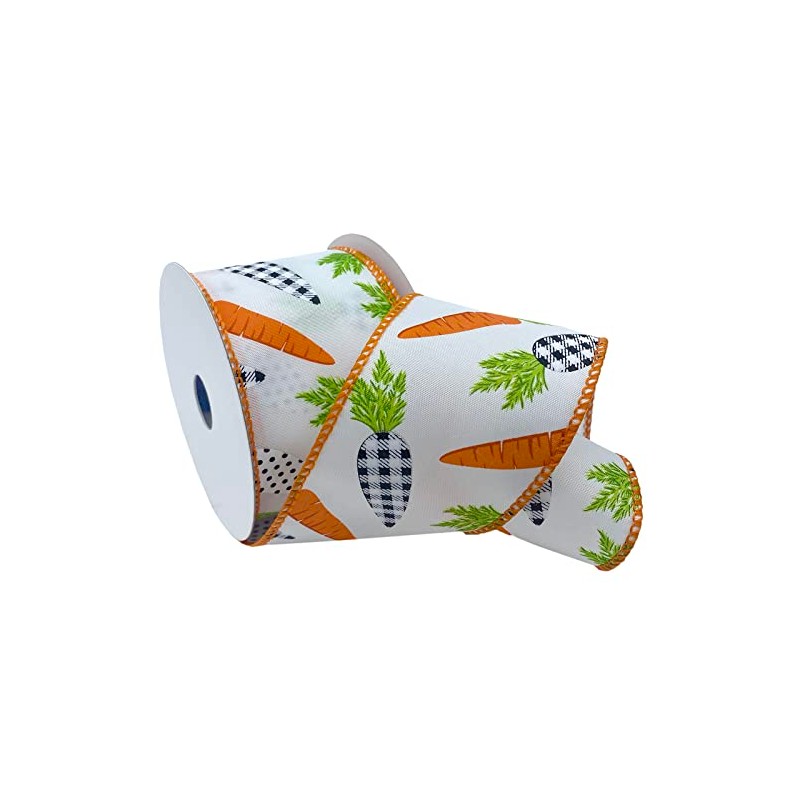 Morex Ribbon Wired Taffeta Carrot Toss Ribbon, 2.5 inch by 10 Yards, White/Orange, 7275.60/10-620