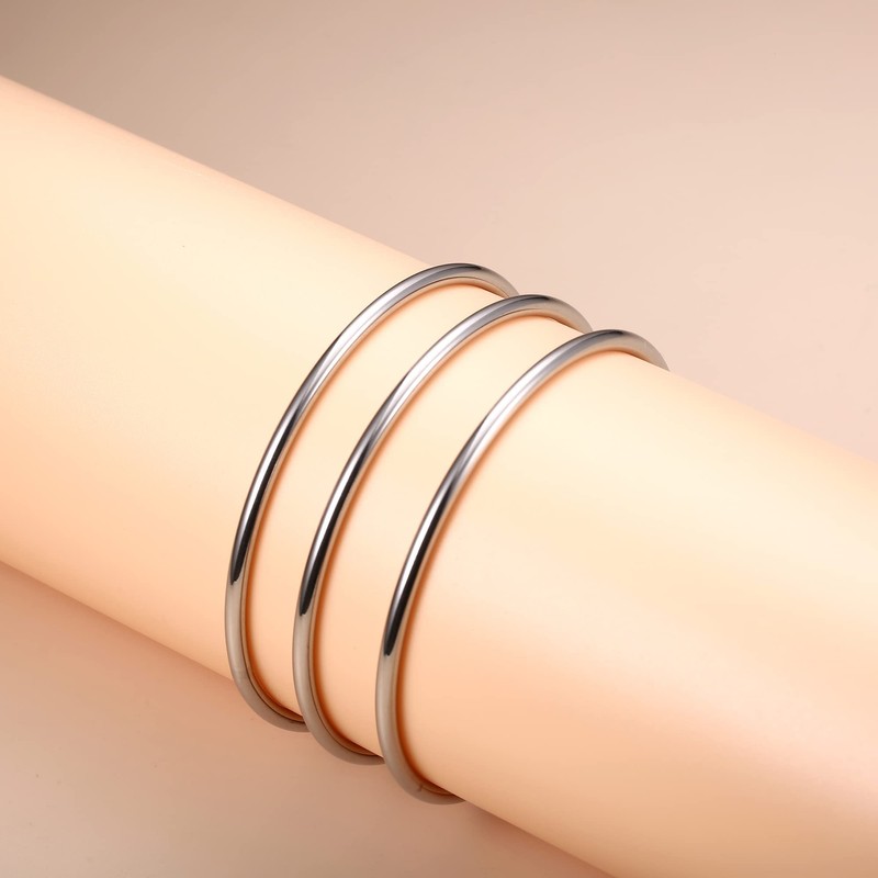 Morfetto 3 mm 14K Gold Bangle for Women Bangle Set Stainless Steel Stackable Shiny Thin Round Bangle, Stainless Steel