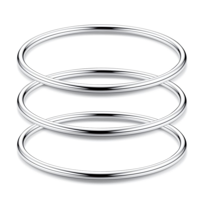 Morfetto 3mm 14K Gold Bangles for Women Bangle Set Stainless Steel Stackable Glossy Thin Round Bangle Bracelet Silver-8.5inch