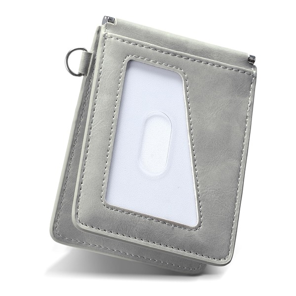 MORFFEYIA Men's Pass Case, Double-sided, Commuter Pass Holder, Bifold Butterfly IC Card Case, Large Capacity, Thin, Storage, License, Commuting to Work or School (Gray), gray