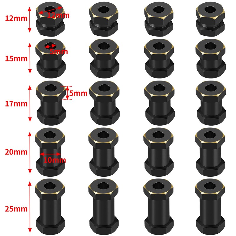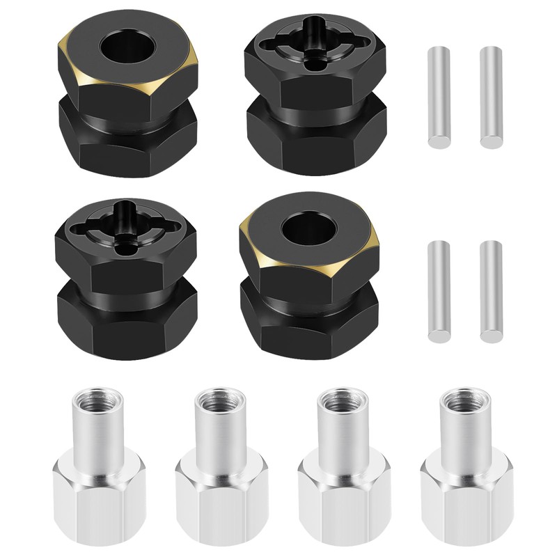 MORFUM 4PCS RC Hex Hub 12mm Brass Wheels Hex Hub 12mm/15mm Offset Extension Black Hex Drive Adapter Combiner Coupler Conversion Compatible with 1/10 RC Crawler Axial SCX10 90046 D90 Upgrades (12mm)