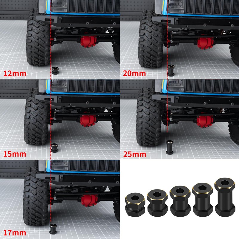 The wheel spacer fit for 12mm hex rims and is compatible with 1/10 RC Crawler Car Axial SCX10 90046 D90