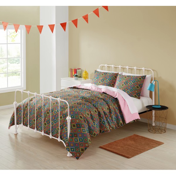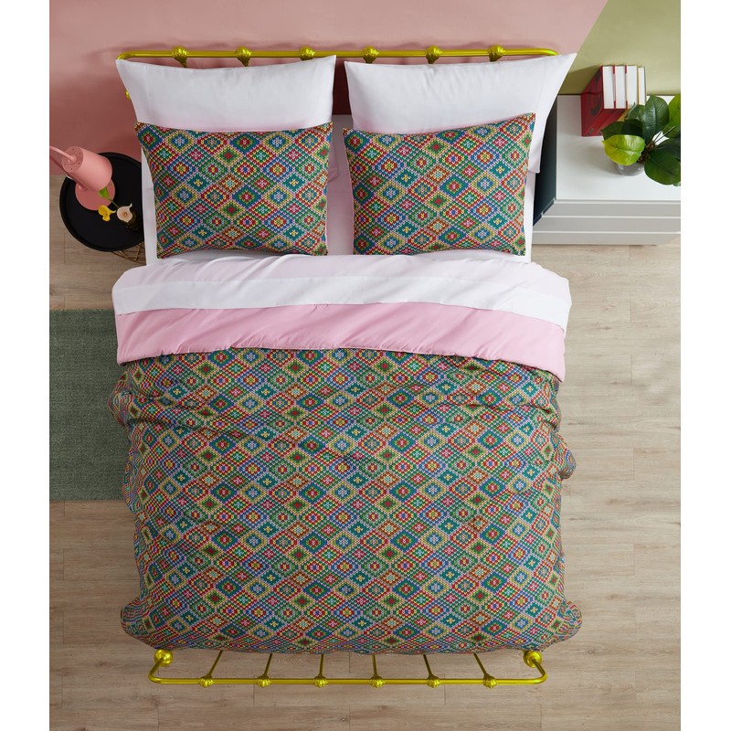 • TECHNICOLOR TESSILATION: Bring a splash of design to any room with this endless rainbow diamond knit pattern that looks like your favorite sweater! The reverse side of this cozy comforter set features a solid bubble gum pink color for an added pop of color.
