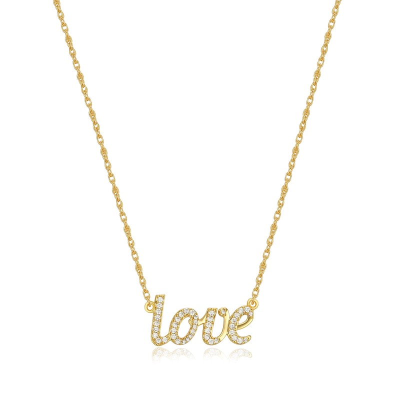 MORGAN & PAIGE .925 Sterling Silver 18K Yellow Gold Plated Statement Dainty Necklace for Women, Hypoallergenic Cursive Pendant Love Cubic Zirconia Necklace - 16in with 2in Extender Rope Chain