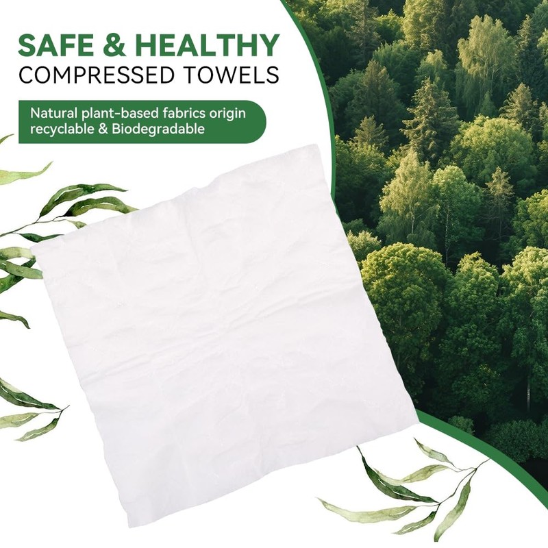 - 【Biodegradable 】 These compressed cotton towel tablets are naturally degradable. After use, you can bury them in the ground and they will begin to decompose within three weeks, minimizing the impact on the environment. A reusable drawstring storage bag is included, practicing a zero-waste lifestyle