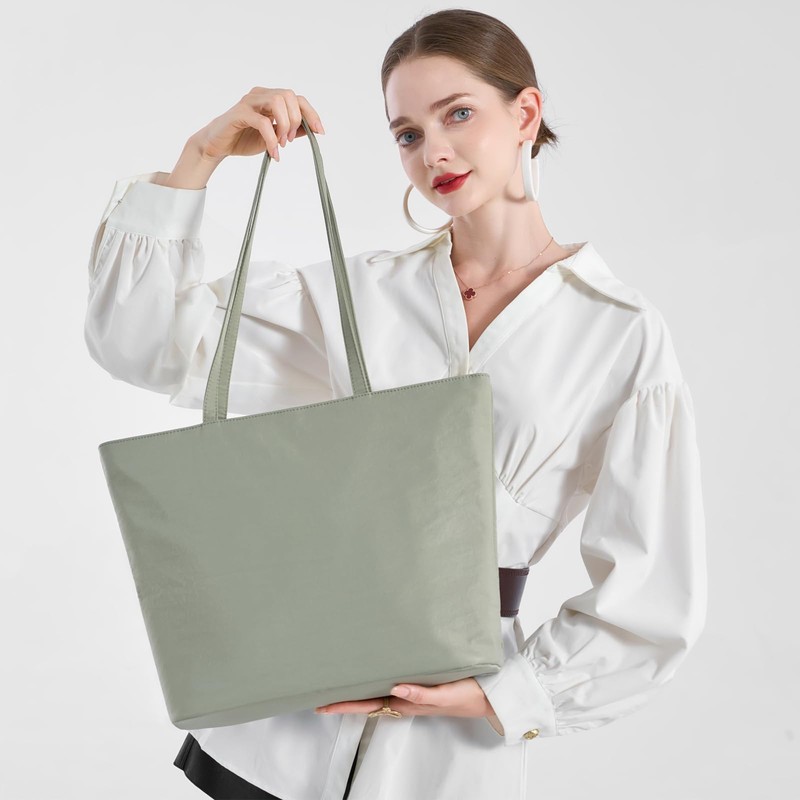 MORGLOVE Womens Waterproof Tote Bag Large Capacity Shoulder Handbag with Zip and Pockets Light Green