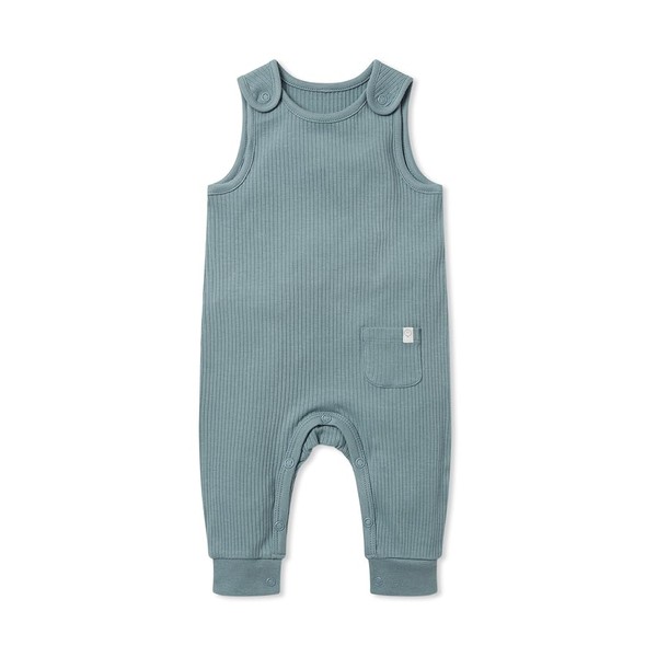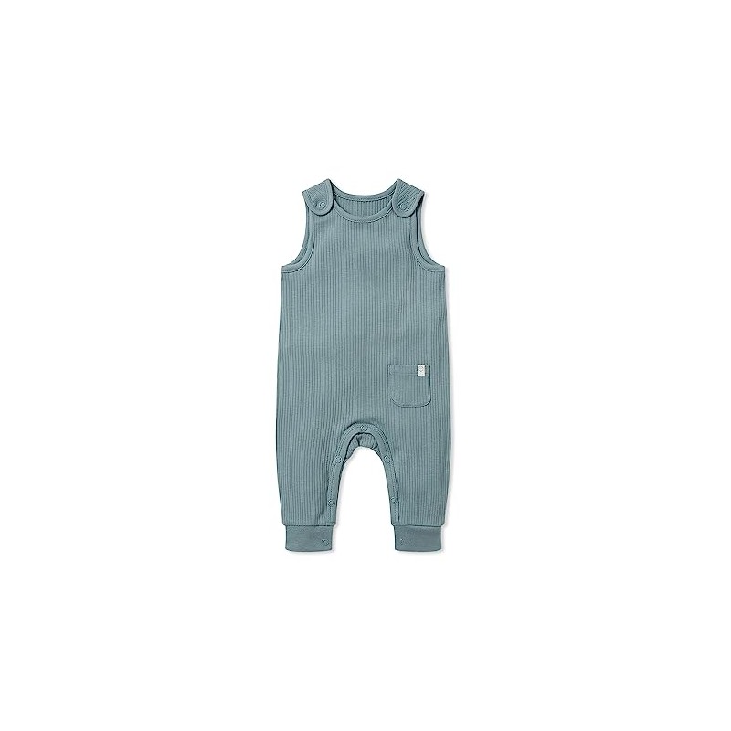 MORI Baby Unisex Romper in Ribbed Blue with Shoulder Snaps and Pocket - One Piece Jumpsuit for Boys and Girls - 12-18 Months