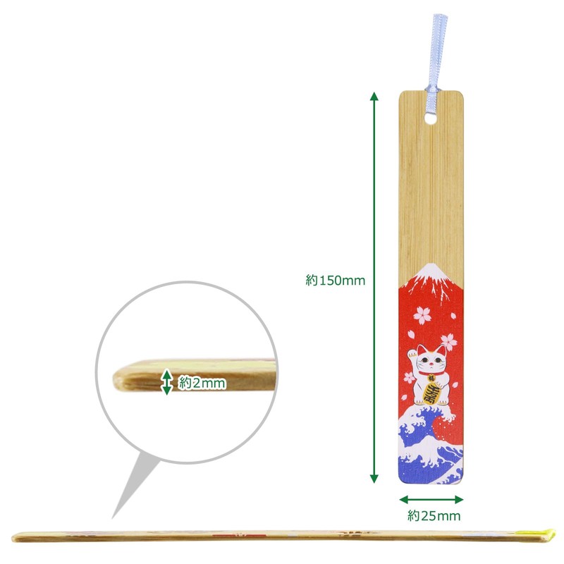Morikuru TK01-10 Bamboo Bookmark, Print Processing, Length 5.9 inches (15 cm), Wooden SG Wonder Zone Pattern (Maneki Neko / Red Fuji)