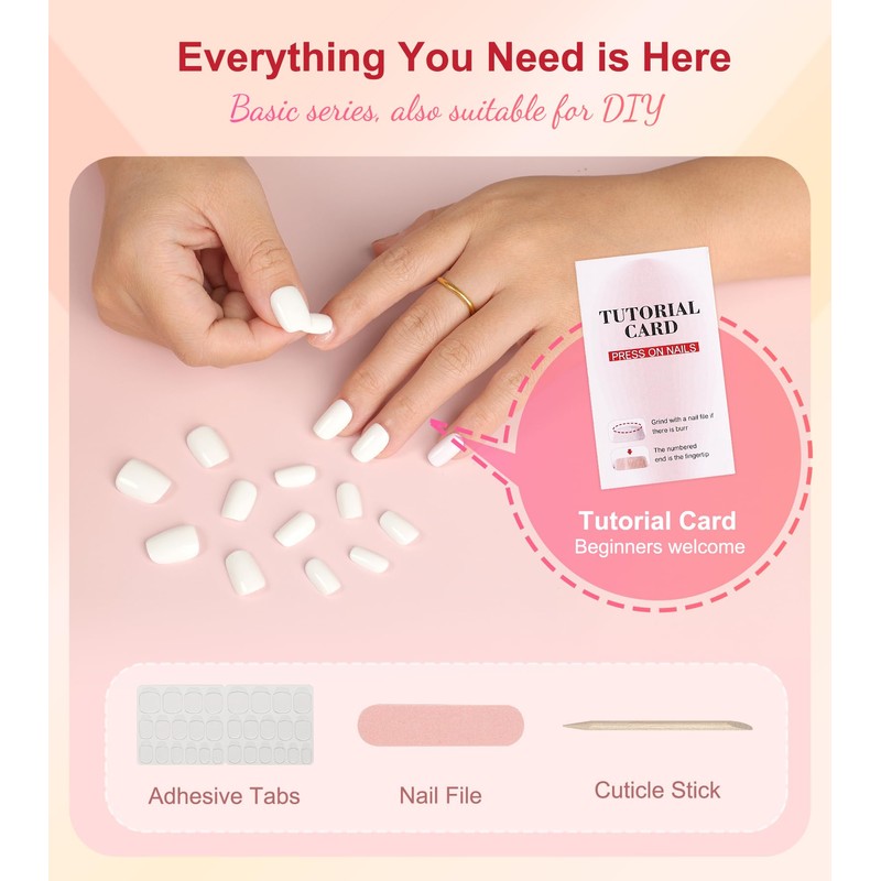 - Easy to Use - Whether you're a pro or a beginner, our cute press on nails come with complete accessories including tutorial cards for easy application. Adhesive tabs are suitable for short term wear, liquid glue is recommended for long term wear