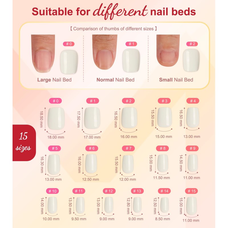 - Morily Press on Nails Short - 32pcs with 16 sizes of short press on nails square, more options for different nail bed sizes. They are also great as a choose for girlfriend, mom, sister, or bestie