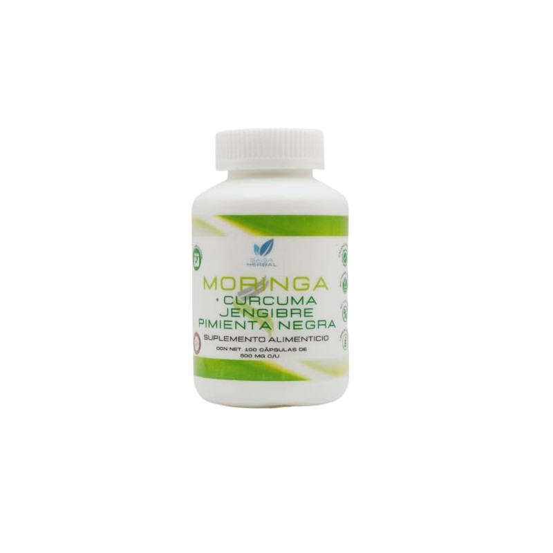 Moringa 100 Cápsulas con Curcuma, Jengibre. 500 mg.