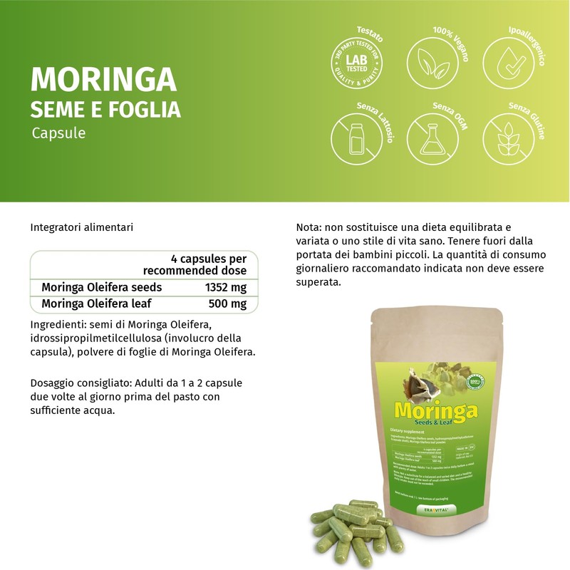 - Convenient intake: Moringa seeds and powder capsules are easy to dose and ideal for everyday use. No preparation required, perfect for an active lifestyle.