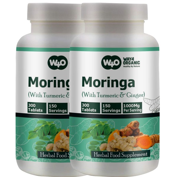 Moringa Tablets with Turmeric and Ginger, 300 Pills, 5 Month Supply, 150 Serving, 1000 Mg per Serving. One Capsule with Multiple Benefits - Supports Digestive Health(Pack of 2)