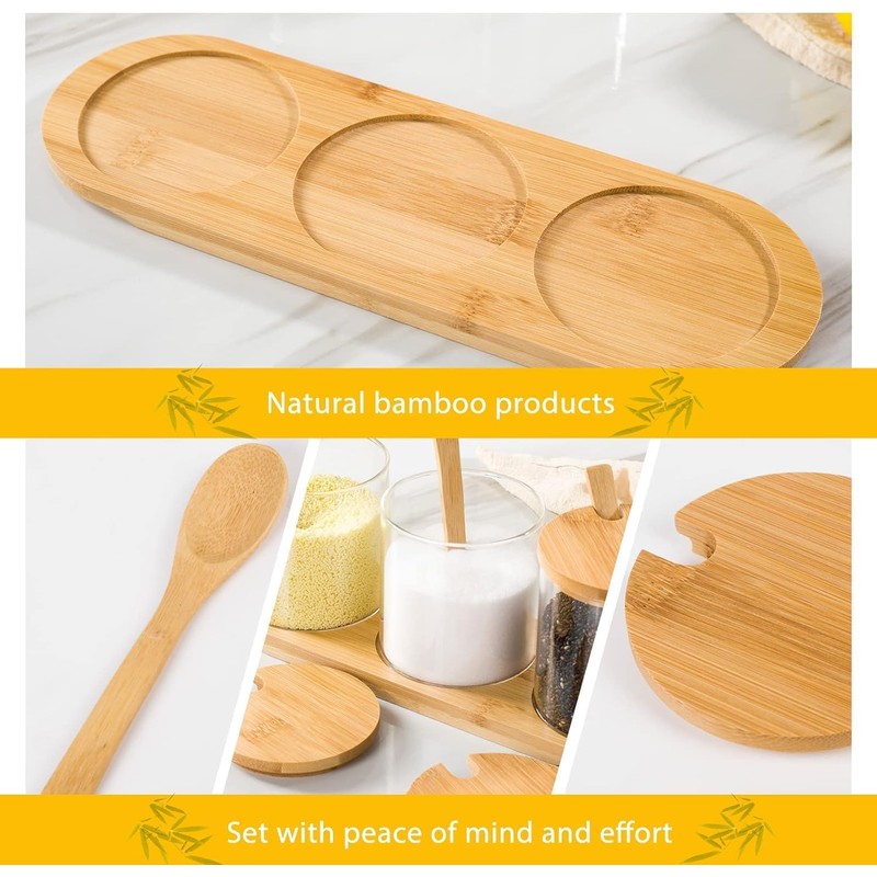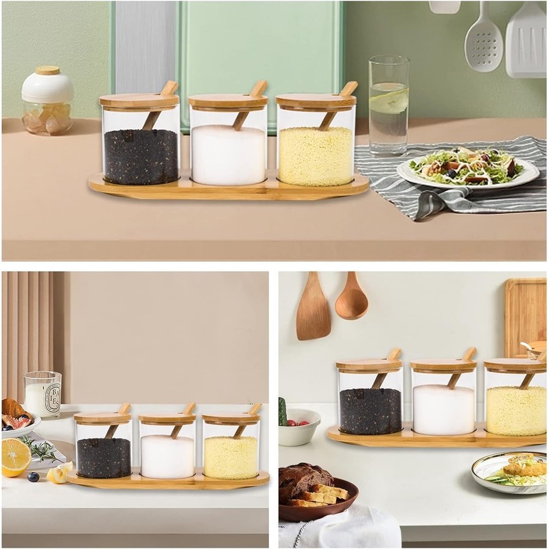 [morining place] Condiment Jar Set with Spoon, Salt, Pepper and Sugar Container, Condiment Pot, Kitchen, Cruet Container (Set of 3)