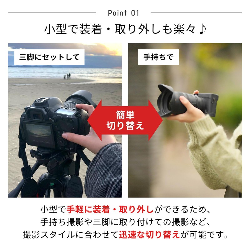 Small size and easy to install and remove, so you can quickly switch to suit your shooting style, such as when shooting by hand or attaching it to a tripod.