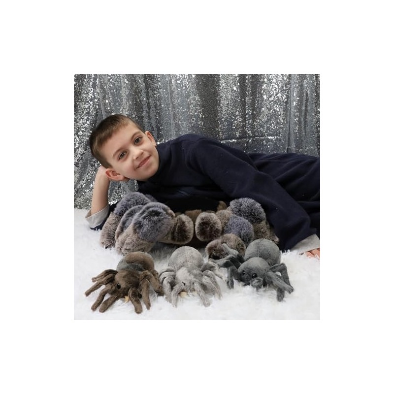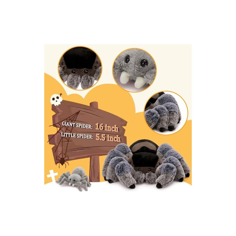 MorisMos 4Pcs Large Spider Plush, 16inch Mommy Spider Stuffed Animal with 3 Babies, Realistic Plush Toys, Soft Cuddly Gifts for Kids