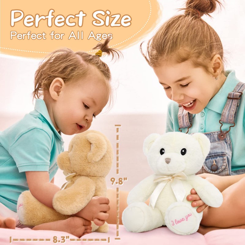 Each teddy bear is about 12 inch. Oso de peluche gigante with perfect size is suitable for carrying around. 2-pack small teddy bears bulk the best playmates to accompany you anytime, anywhere. Bring you happiness and love.