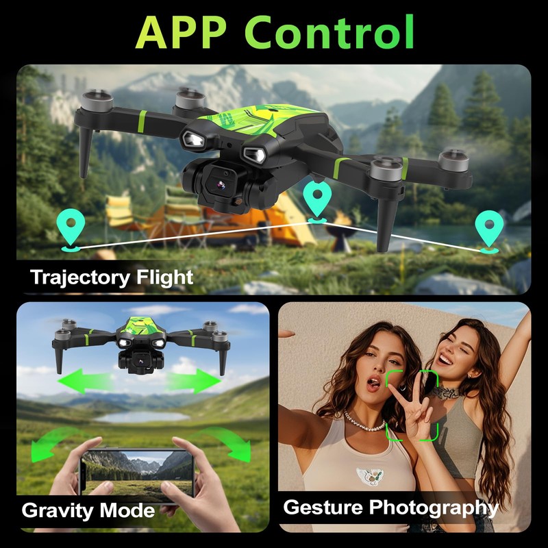 - Unleash Your Creativity with Smart Features:Perform breathtaking 3D flips with a single button press while optical flow tech keeps your drone stable. The user-friendly app lets you draw flight paths, control movements by tilting your phone, and instantly edit footage into music videos. One-touch commands handle takeoff, landing and hovering - perfect for capturing birthday parties or vacations without complex operations