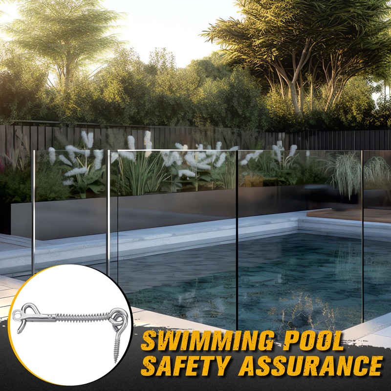 - Convenient Locking Design: the safety fence lock is an all-in-one solution, With the spring hook and eye safety lock, locking mechanism features a pull-back plate that compresses a spring to open the latch; Once released, the lock engages