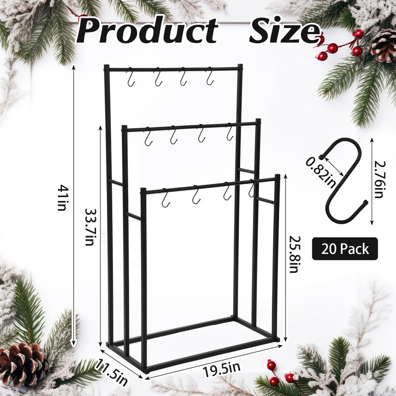 - 3 Tier Design: the Christmas stocking holder stand adopts a 3-tier display rack with a height design of 66 cm/ 86 cm/ 106 cm, forming an idea visual staircase to ensure that each Christmas stocking is clearly visible, making the gift display layer distinct; Whether it is by the fireplace or in the corner of the living room, it instantly becomes the focus of the holiday