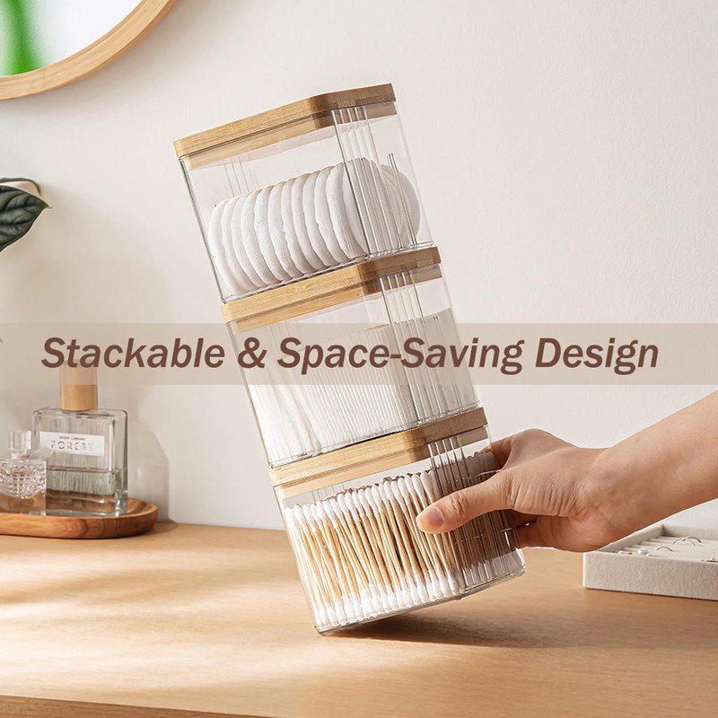 - What You Get: 1 x makeup bushes holder (4"W x 4"D x 7.5"H),1 x cotton swab organizer (4"W × 4"D × 4"H), 1 x lipstick storage box (4"W × 4"D × 4"H) with phone stand
