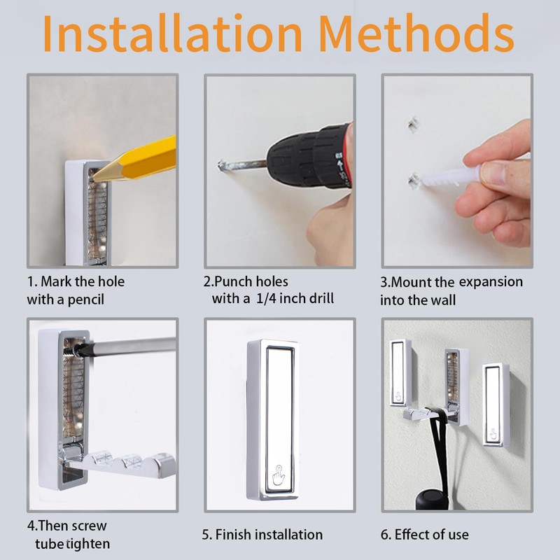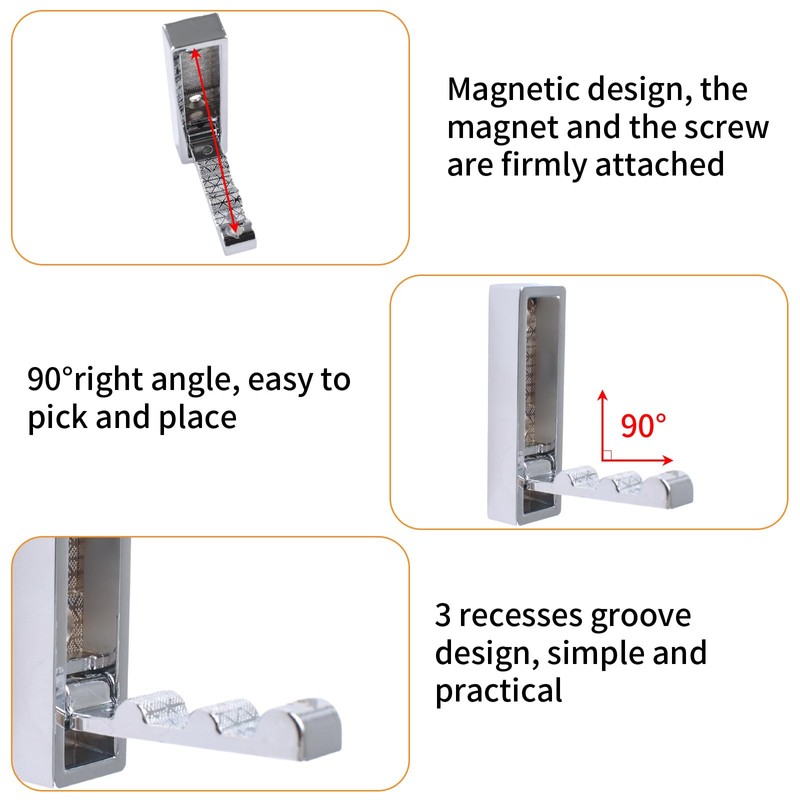 Designed with functionality and space-saving in mind, these versatile hooks ingeniously combine magnetic closure and screw-mounting for steadfast stability when closed.When unfolded, each hook gracefully transforms into a 90-degree right angle, providing ample hanging space while maintaining a sleek profile.