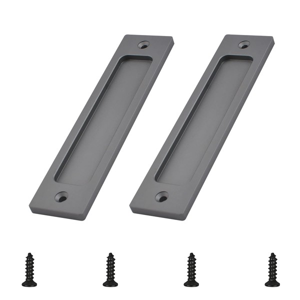MOROBOR 5.91" Rectangular Recessed Sliding Door Pulls, 2pcs Matte Gray Flush Pull Aluminum Alloy Closet Door Finger Pulls with Mounting Screws for Sliding Barn Door